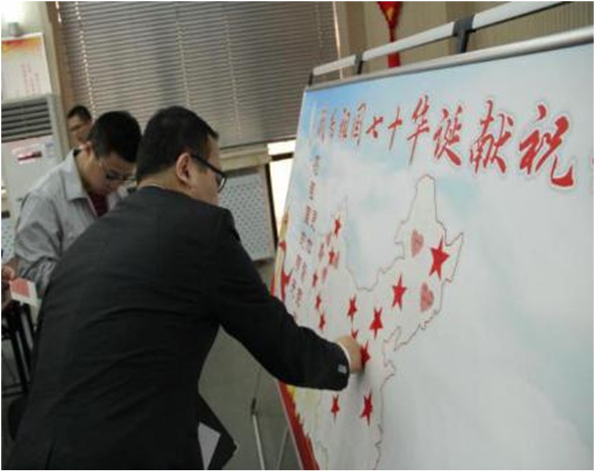 音樂響起,全體起立齊聲高歌--《沒有共產(chǎn)黨就沒有新中國》,熟悉的旋律讓我們腦海里瞬間呈現(xiàn)出革命先輩,拋頭顱,灑熱血的畫面,革命先輩崇高的愛國情懷和革命精神我們將永遠(yuǎn)銘記。請全體起立迎團(tuán)旗,全體新老團(tuán)員面向團(tuán)旗,高舉右拳,以最宏亮的聲音莊嚴(yán)宣誓,重溫入團(tuán)誓言。感受楷模精神力量,聆聽《為了光明的約定》--我們身邊許黨報國的杰出楷模,來自西電西變的優(yōu)秀共產(chǎn)黨員郭強(qiáng)的故事,西電西變宣講團(tuán)隊五位同志懷著對郭強(qiáng)同志的無限敬仰和懷念,飽含深情的講述了郭強(qiáng)同志堅持不懈奮斗在生產(chǎn)一線,平凡的人不平凡的感人事跡,弘揚郭強(qiáng)同志對黨忠誠、擔(dān)當(dāng)作為、干事創(chuàng)業(yè)的精神。伴隨著悠揚抒情的音樂,激情昂揚的詩朗誦--《放飛中國夢》,展現(xiàn)當(dāng)代青年愛國愛黨的青春風(fēng)貌,激勵青年擔(dān)當(dāng)實現(xiàn)偉大復(fù)興中國夢的重任。最后,獻(xiàn)祝福環(huán)節(jié),現(xiàn)場所有人將寫著對偉大祖國70歲生日的祝福寄語和青春宣言的便簽貼,粘貼在“我為祖國七十華誕獻(xiàn)祝?!焙汀拔逅倪\動100周年青春宣言”留言版上。