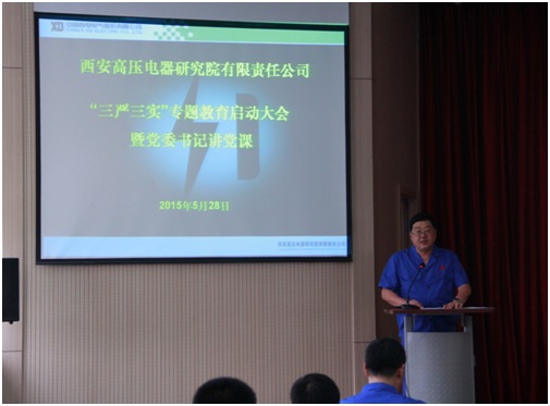 5月28日,西高院黨委書(shū)記鄭軍在多功能廳做了“踐行三嚴(yán)三實(shí),鍛造干部隊(duì)伍,深化反腐倡廉,推動(dòng)轉(zhuǎn)型發(fā)展”專(zhuān)題黨課報(bào)告,并對(duì)我院貫徹落實(shí)“三嚴(yán)三實(shí)”專(zhuān)題教育進(jìn)行了部署。這標(biāo)志著西高院“三嚴(yán)三實(shí)”專(zhuān)題教育正式啟動(dòng)。集團(tuán)“三嚴(yán)三實(shí)”專(zhuān)題教育第一督導(dǎo)檢查組毋運(yùn)希出席大會(huì)。班子成員、中層干部、黨員代表共計(jì)70余人參加活動(dòng)。