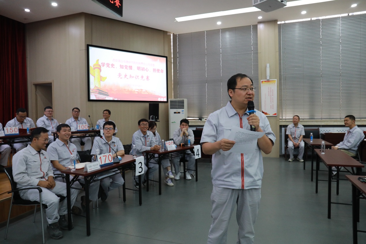 為紀念中國共產(chǎn)黨建黨一百周年,扎實推進黨史學(xué)習教育進一步深入,營造濃厚學(xué)習氛圍、增強學(xué)習興趣,5月26日,由西高院黨委組織,管理一黨支部承辦的“學(xué)黨史、知黨情、明初心、擔使命”黨史知識競賽活動在多功能廳舉行。九個黨支部的27名選手、40余名觀眾參與了此次知識競賽,院黨委副書記、總經(jīng)理賈濤同志出席此次活動。