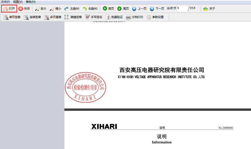 2)打開XIHARI 專屬驗章助手“陜西CA智能證書助手(西安高壓電器研究院有限責任公司)”。