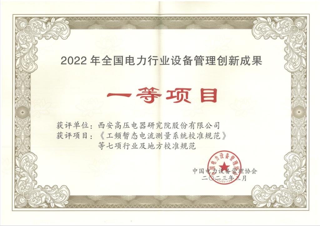 近日,由我院計(jì)量室申報(bào)的《工頻暫態(tài)電流測(cè)量系統(tǒng)校準(zhǔn)規(guī)范》等七項(xiàng)行業(yè)及地方校準(zhǔn)規(guī)范榮獲2022年全國(guó)電力行業(yè)設(shè)備管理創(chuàng)新成果一等項(xiàng)目。該項(xiàng)目中有六項(xiàng)技術(shù)規(guī)范為工業(yè)和信息化部管理的行業(yè)校準(zhǔn)規(guī)范,一項(xiàng)技術(shù)規(guī)范為陜西省市場(chǎng)監(jiān)督管理局管理的地方校準(zhǔn)規(guī)范,目前,此七項(xiàng)技術(shù)規(guī)范均已發(fā)布實(shí)施。