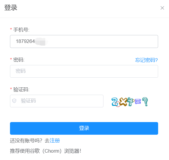4. 注冊信息輸入完成之后,點擊注冊按鈕,頁面會直接跳轉(zhuǎn)到登錄頁面。登錄界面還需要再輸入一遍密碼和驗證碼,才可登錄成功,登錄頁面如下: