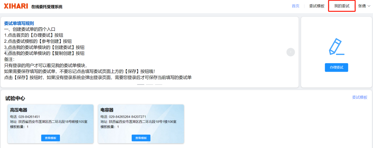 步驟1、進入首頁,點擊首頁的【我的委試】按鈕