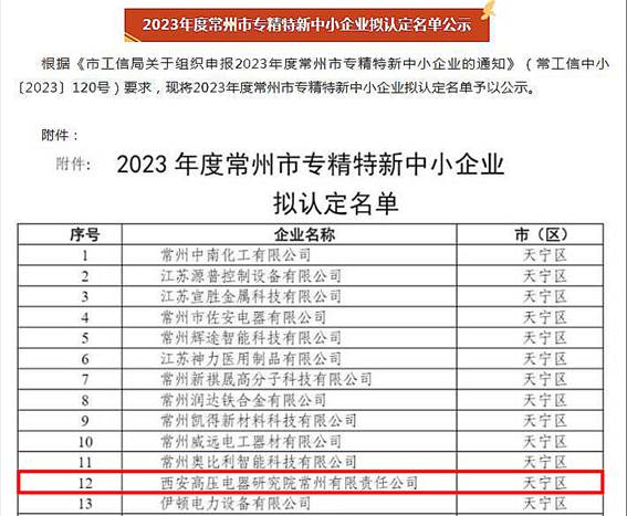 近日,常州市工信局發(fā)布《關(guān)于2023年度常州市“專精特新”中小企業(yè)擬認(rèn)定名單的公示》,西高院常州公司順利通過(guò)“2023年度常州市專精特新中小企業(yè)”認(rèn)定。