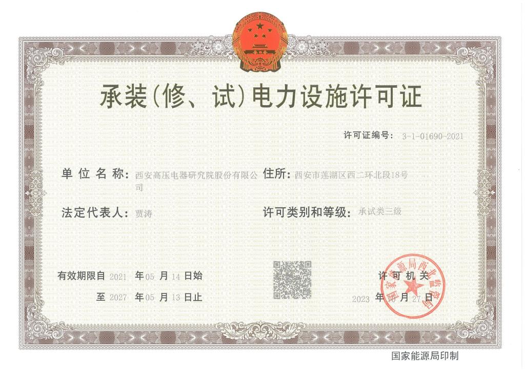 近日,我院順利通過國家能源局西北監(jiān)管局承裝(修、試)電力設(shè)施資質(zhì)升級申請的審查,成功取得承試電力設(shè)施許可資質(zhì)(三級)資質(zhì)證書,標(biāo)志著我院自此可從事110kV及以下電壓等級電力設(shè)施的現(xiàn)場試驗業(yè)務(wù),對提升我院市場競爭力具有十分重要的意義。