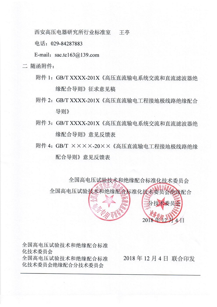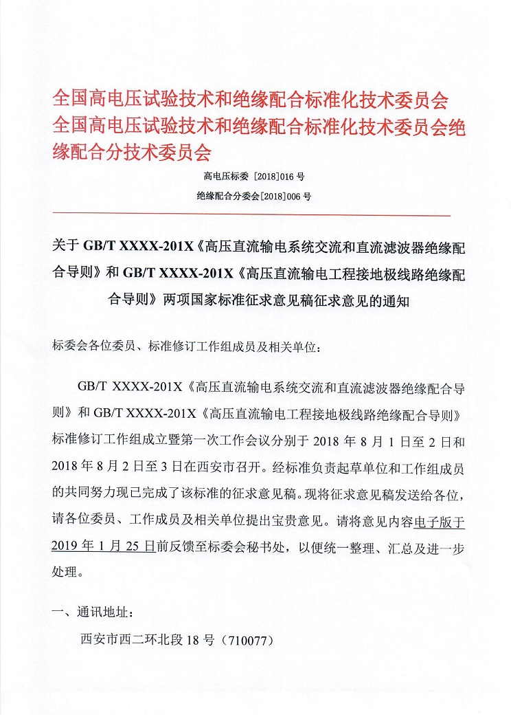 關于GB/T XXXX-201X《高壓直流輸電系統(tǒng)交流和直流濾波器絕緣配合導則》和GB/T XXXX-201X《高壓直流輸電工程接地極線路絕緣配合導則》兩項國家標準征求意見稿征求意見的通知