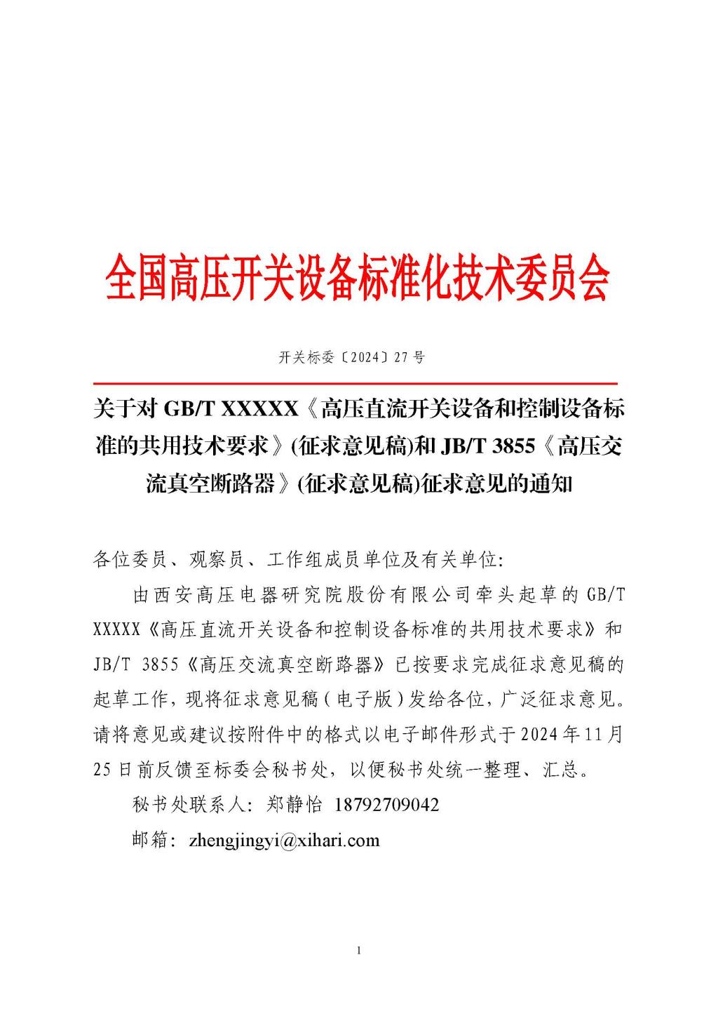 關(guān)于對?《高壓直流開關(guān)設(shè)備和控制設(shè)備標(biāo)準(zhǔn)的共用技術(shù)要求》和?《高壓交流真空斷路器》征求意見的通知