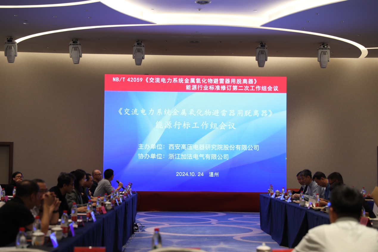 2024年10月23日至25日,NB/T 42059《交流電力系統(tǒng)金屬氧化物避雷器用脫離器》能源行業(yè)標準修訂第二次工作組會議在溫州樂清市召開,本次會議由SAC/TC81全國避雷器標準化技術(shù)委員會掛靠單位西安高壓電器研究院股份有限公司主辦,浙江加法電氣有限公司協(xié)辦。來自科研院所、檢測認證機構(gòu)、制造商和用戶共40余位行業(yè)專家參會。