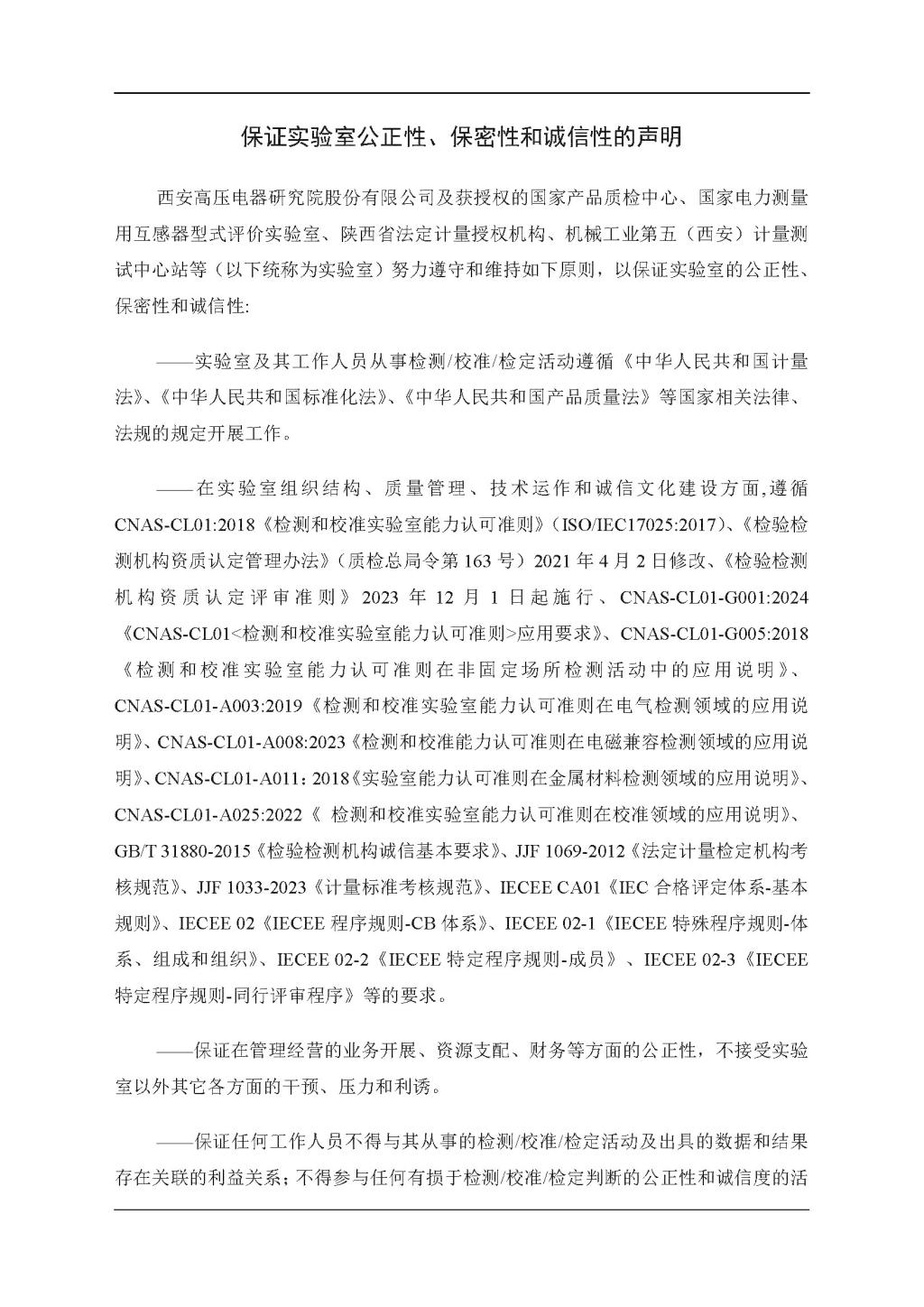 保證實驗室公正性、保密性和誠信性的聲明