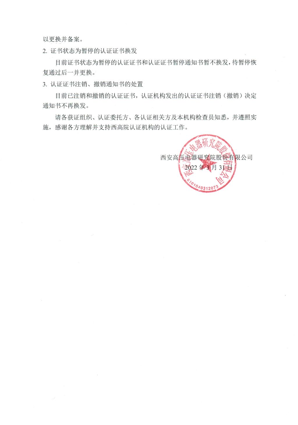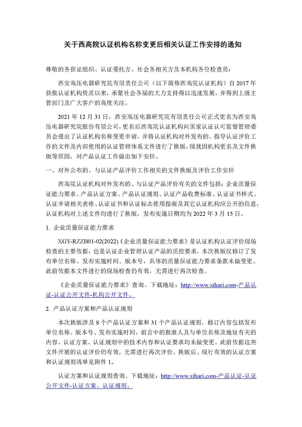 關(guān)于西高院認(rèn)證機(jī)構(gòu)更名后相關(guān)認(rèn)證工作安排的通知